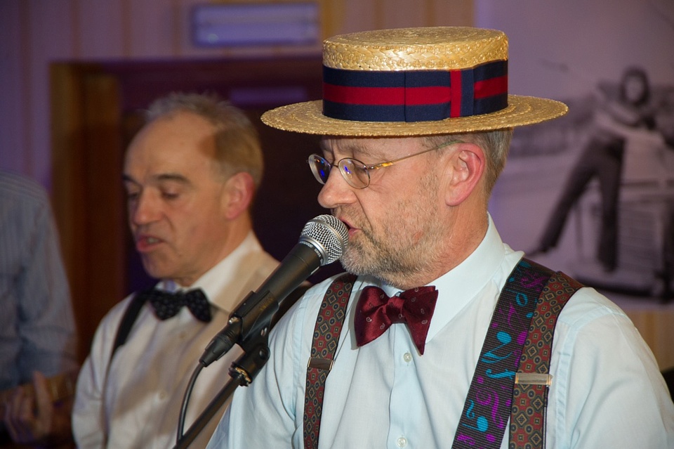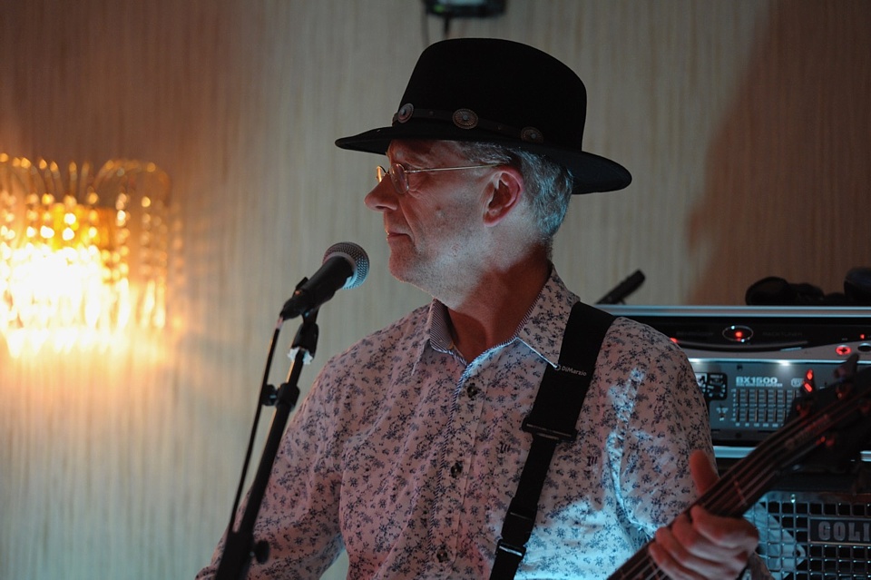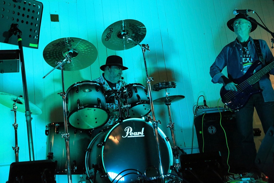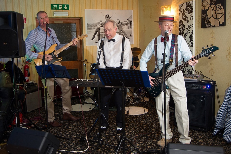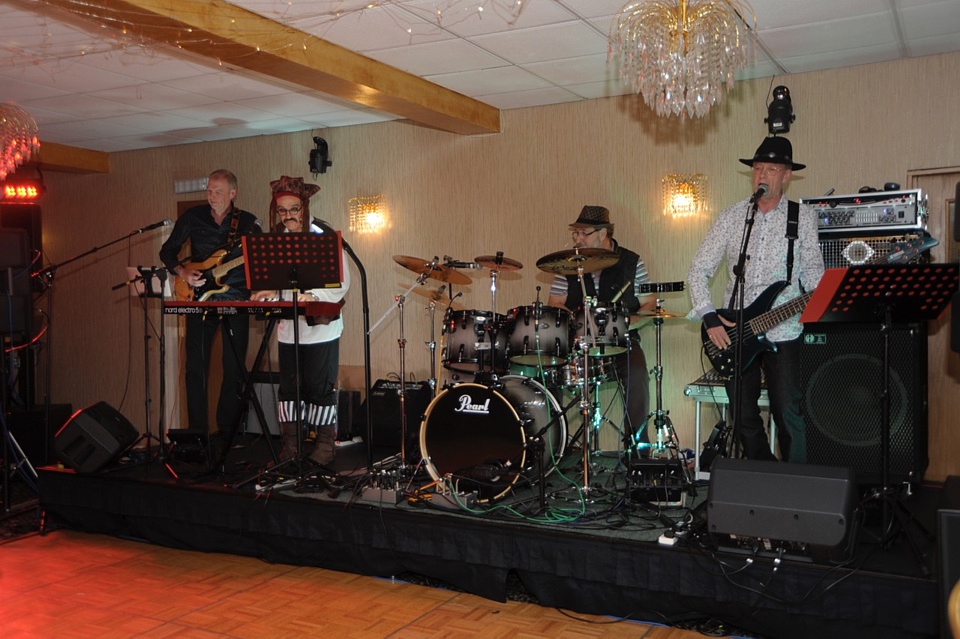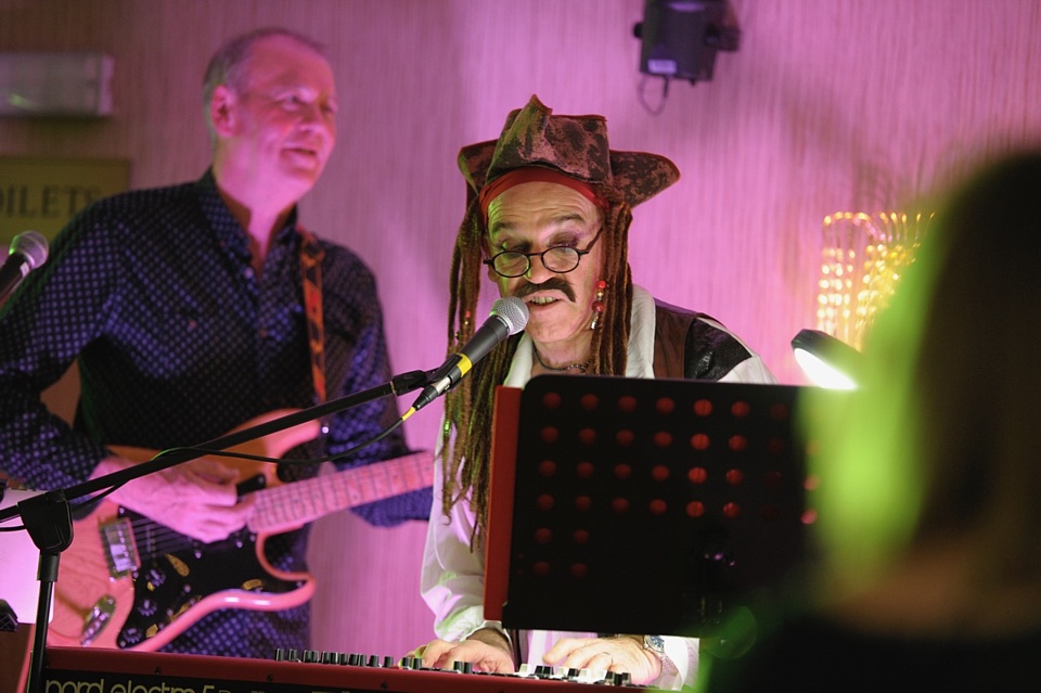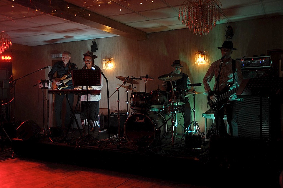 Steve's wife Kim organised a surprise birthday re-union gig for his 60th birthday. Alex, Kev & Eric had secretly rehearsed some of the old songs. Full marks to Steve for performing "on the spot" on the night! The theme was the "roaring twenties", hence the fancy dress and straw boater!