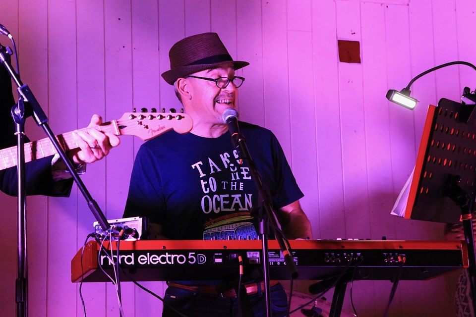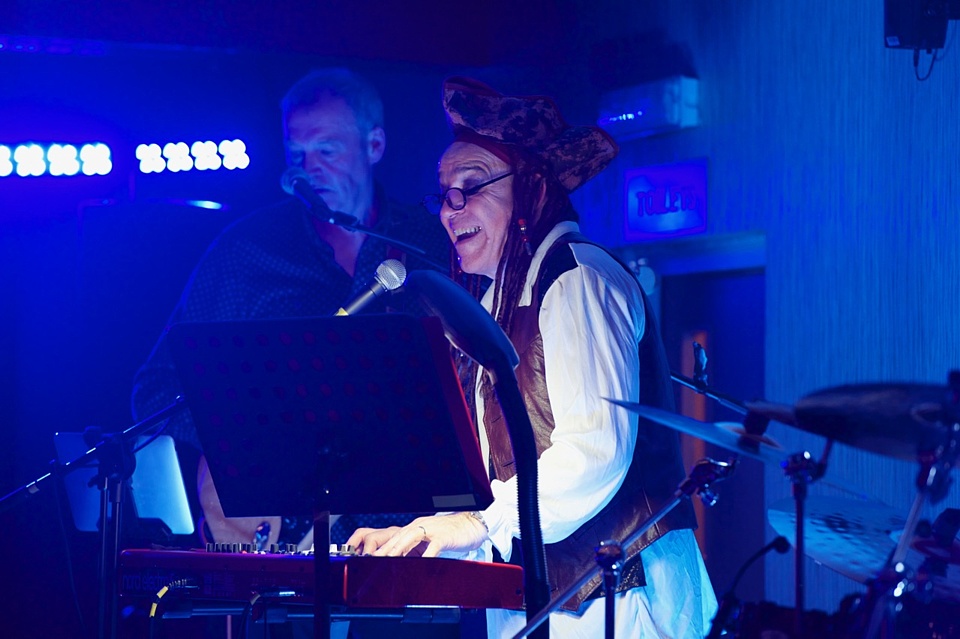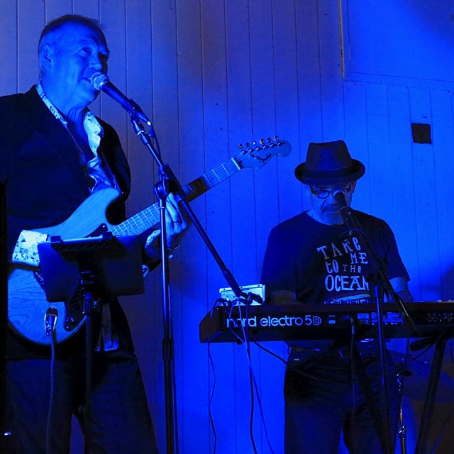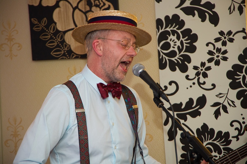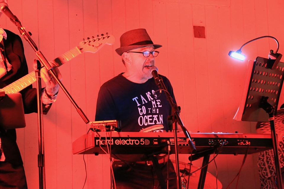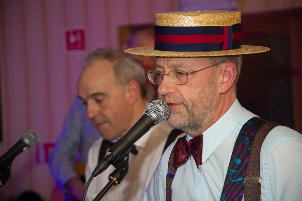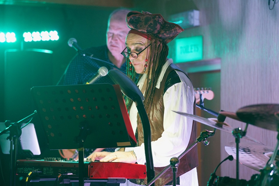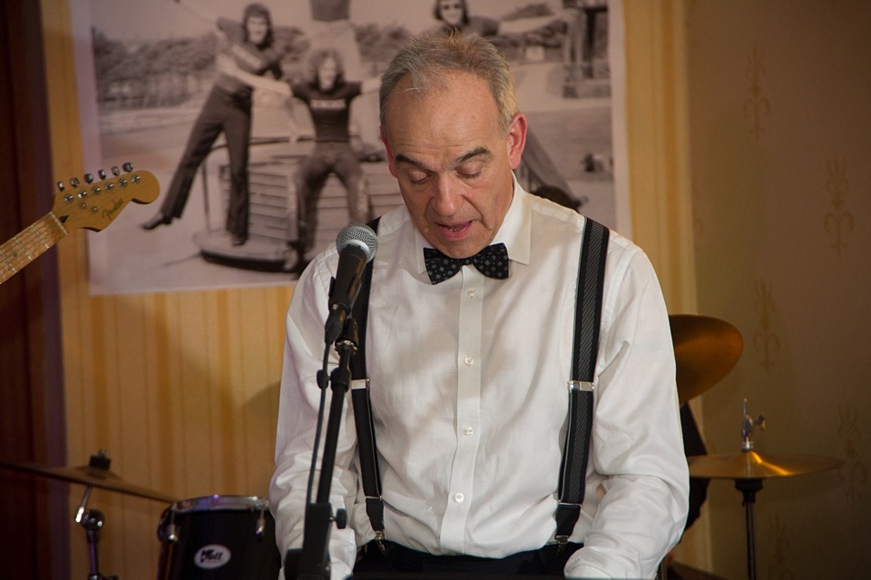 Steve's wife Kim organised a surprise birthday re-union gig for his 60th birthday. Alex, Kev & Eric had secretly rehearsed some of the old songs. Full marks to Steve for performing "on the spot" on the night! The theme was the "roaring twenties", hence the fancy dress and straw boater!