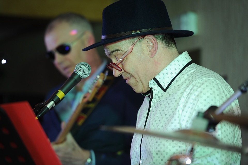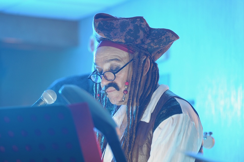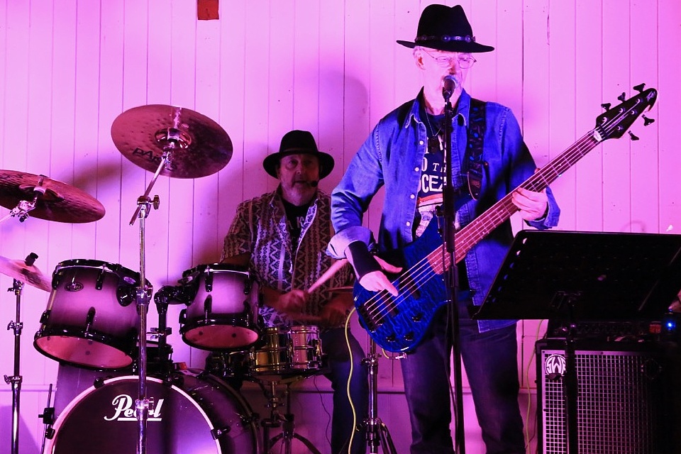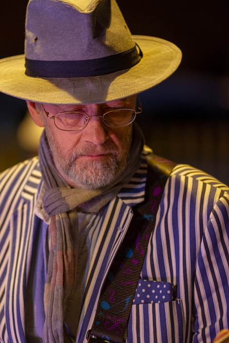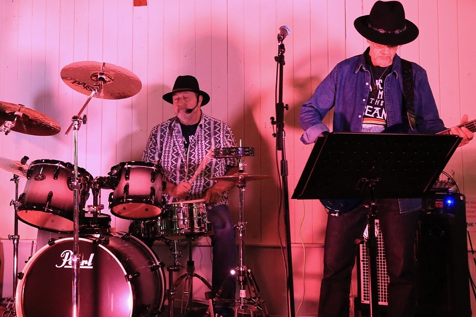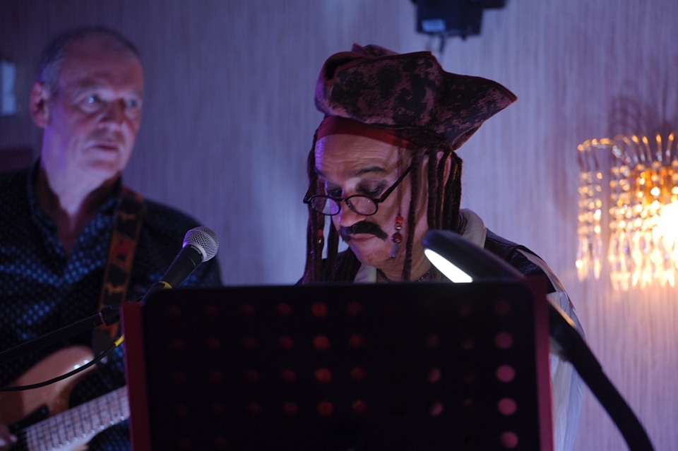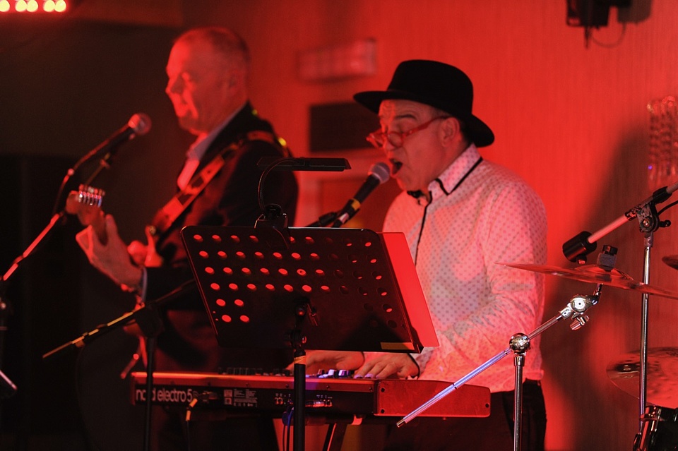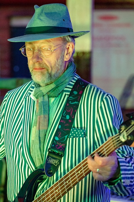Steve's wife Kim organised a surprise birthday re-union gig for his 60th birthday. Alex, Kev & Eric had secretly rehearsed some of the old songs. Full marks to Steve for performing "on the spot" on the night! The theme was the "roaring twenties", hence the fancy dress and straw boater!